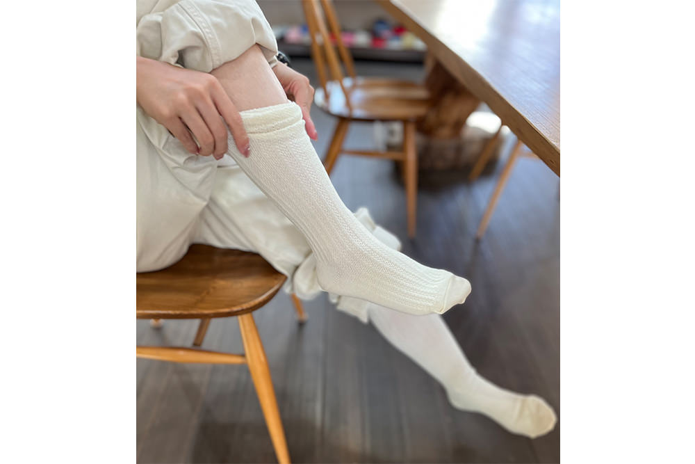 縦に続くシンプルな連続の編み柄が、スマートな足もとを演出してくれます。