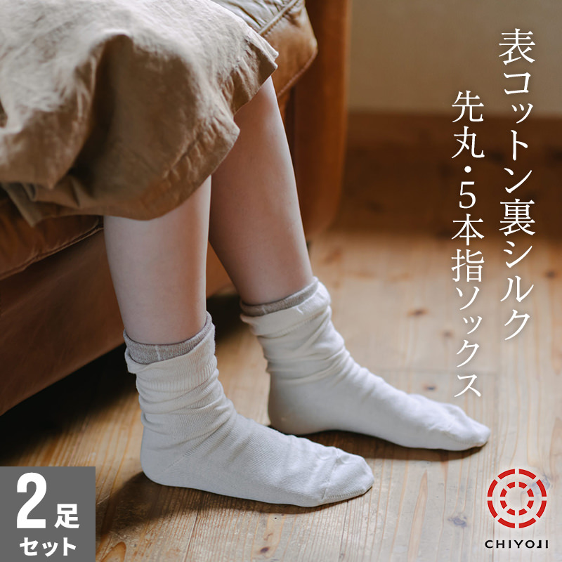 表コットン裏シルク 冷えとりソックス(先丸・5本指) 2足組